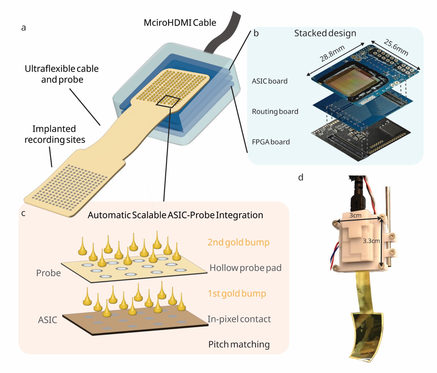 Our preprint on a high-channel-count neural interface is now online. We developed an ASIC featuring 5,376 simultaneous recording channels, in-pixel amplification, full-bandwidth recording (20 kS/s per channel), multiplexed ADCs (12 bits), and on-chip stimulation. In collaboration with Prof. Chong Xie’s group, we demonstrated high-density flexible probe integration and in vivo recordings in rats. Congratulations to Yingying, who led this multi-year effort spanning chip design, chip-probe integration, system miniaturization, and animal experiments!